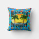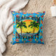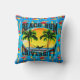 Beach Bum University, man relaxing in a hammock between two palm trees enjoying the sunset over the ocean. Ocean blue background with vintage surfboards.