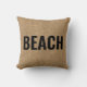 Beach house throw pillow in a faux burlap with black typography design that says - Beach. Design repeated on both sides of the pillow. Text can be changed to another short word. If you have more text that you'd like to add and would like help making it all fit properly, contact me - I'd love to help.