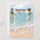 Design features a printed coloured beach and greenery floral element in shades of green tan and white overlaying a beach ocean scenery with white canopy top and marsala white flower blooms and calligraphy script or type writing. Great for your wedding celebrations!