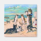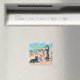 This magnet is great and very sturdy. It has a glossy shine on the front. I really like this vintage image of cats playing on the beach. I used it for a decorative refrigerator magnet. The print looks nice and the colors look wonderful.