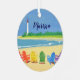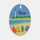 Enhance your coastal decor and remember the beach all year long with this painting of seaside beach chairs and a lighthouse. Personalise with a name, date or message. A wonderful Christmas ornament for beach lovers.