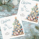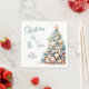 Celebrate the season with this festive and beachy party napkin, perfect for a Christmas By The Sea celebration. The design features a whimsical Christmas tree made of beach shells, starfish, and coral on the right side, adding a fun coastal touch to your table setup. The overall color palette includes shades of teal blue and tan, creating a relaxed, breezy vibe.