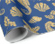 Beach Christmas Seahorse Pattern Gold Navy Blue Wrapping Paper
