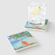 The coasters are gorgeous, a quality feel and heavy weight. They look like a precious archeological find. A rustic stone juxtaposed with a modern floral black and white print. I like the way the print goes slightly imperfect on the cut stone edges giving them a kind-of natural beauty.