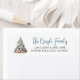 Beach Christmas Tree Return Address label. This festive return address label features a charming Christmas tree crafted from seashells and starfish, topped with a starfish and blending soothing blue and green hues that evoke the beauty of the ocean. The tree design is on the left, while your name and address appear on the right in a mix of script and serif fonts, adding a casual yet elegant touch. Resting on a sandy base, the rustic watercolor style makes this label perfect for Christmas cards or holiday party invitations. Ideal for anyone living in tropical locales like Florida, Hawaii, or the Bahamas—or for those who simply adore coastal vibes—it adds a splash of surf and sand to your holiday mail.
