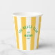Beach Club Crest Yellow Cabana Stripe Monogram Paper Cups