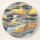 I'm not sure how much moisture these will soak up, haven't had a chance to try them out, but they look good and I like the cork backing. The printing is fine ~ and really looks cool with an artisan's hand made "Hurricane Martini" glass sitting on top of my painting (on the coaster) in my studio.