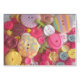 A wonderful collage of buttons in the summer beach colours of yellow, pink, rose, green and orange. A great design for anyone who collects buttons or just loves buttons.