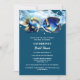 Beautiful dark blue and faux gold coral reef island fish are swimming below pale blue ocean waves and are set against a dark blue background that has white templates for your personalised wording. The generative content appears to shimmer and shine and is ideal for a beach; coastal destination; tropical island; nautical, snorkelling or scuba diving theme bridal shower; birthday or any beachy special occasion. Don't forget to delete the wording on the back if not required!