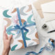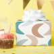 This wrapping paper has a mid-century modern design of crescents in beach colours of tans and blues. Want the same design with different colours? Message me.