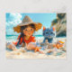 A summer day full of sunshine, seashells, and sandcastle magic with a cat.