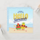 Fun summer beach scene with pineapple, sunshine and watermelon. Blank on back for your personal note.