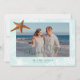 Modern summer custom photo beach wedding thank you elegant card template featuring a chic Thank You script overlay, a starfish, and a sea glass light aqua blue background. +++++++++++++++ Suitable for a modern beach, sea, oceanfront, coastal, tropical, or nautical destination-themed wedding. Personalise it with your picture and your text on both sides!