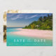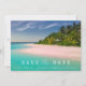 Set the stage for your dream destination wedding with our Beach Destination Wedding Save the Dates. Featuring a breathtaking aerial view of a pristine beach, these cards instantly transport recipients to a world of sun-kissed shores and gentle ocean breezes. Customise with your wedding details on the front and a photo on the back. Whether you're exchanging vows beneath swaying palms or dancing under the stars, this save the date captures the essence of your tropical celebration. Share the excitement and invite your loved ones to join you for an unforgettable journey to paradise