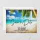 Tropical beach wedding save the date postcards for your destination wedding. Customise with your wedding details on the front and backside of the card.