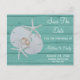 This design features a couple white sand dollars and starfish. Two wedding rings rest on the sand dollars. The background is a seafoam green wood grain background. Personalise this postcard with the details of your wedding. These save the date postcards are great for beach theme or destination weddings. I have this style available in different colour backgrounds, if you don't see what you're looking for just message me. To resize the names to fit, or to add text to the back, click on the Customise It button.