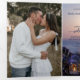 Tri-fold beach or destination wedding invitation featuring two of your own favourite photos. The design shows a bohemian coastal scene with lantern and candle with light sparkles overlooking an ocean. The details panel has a modern purple design. You can use the space also to add all information you would put on an enclosure card, like accommodation or directions etcetera. Alternatively you can use the last page as RSVP card.