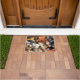 An art design of sand, sky, seaweed, pebbles and water on the beach.