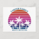 Cool family vacation postcards for an island cruise. Features beautiful palm trees in front of a pretty pink beach sunset. Perfect custom keepsake cards for your summer trip to the sea.