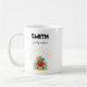 Remember your beach trip with this last name vacation coffee mug. The mug has a red car going on a road trip carrying a surf board, beach toys, life preserver, goggles, and a beach ball. Add your last name for a special touch!