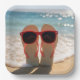 Beach Flip-flops with Red Sunglasses Paper Plate