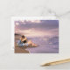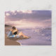 The about to get wet kiss. One in a series of at least seven designs of a couple in love on the beach with the waves lapping the shore, and a beautiful sunset in the cloudy sky. The same photo is available on a greeting card too. The plain beach scene, without the couple, is available on a postage stamp to match all the cards.