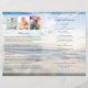 Picturesque blue beach letter size funeral program for men, with a beautiful photo collage. Includes space for an obituary, order of service, poems and more to create a fitting tribute for your loved one. All text is easy to edit and fully customisable.