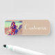 This badge looks professional and it's in keeping with my branding. The magnetic attachment is strong and stays in place all day. The quality of the materials and the colors were exactly as pictured. I couldn't be happier! The printing is clear and easy to read