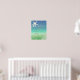 Vintage starfish, a mariners compass, sand dollar, and the words "the Beach is always a good Idea" in brown tan outlined in white are set against a background of deep blue, aqua and green with faint white vintage starfish to make a lovely and soothing sea and beach themed piece of art.
