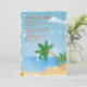 A relaxed, tropical invitation featuring coconut palms on beach surroundings. The grunge style is casual and carefree.