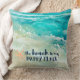 Beach Happy Place Watercolor Ocean Waves Coastal Cushion