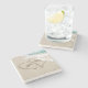 The coasters are gorgeous, a quality feel and heavy weight. They look like a precious archeological find. A rustic stone juxtaposed with a modern floral black and white print. I like the way the print goes slightly imperfect on the cut stone edges giving them a kind-of natural beauty.