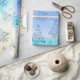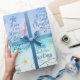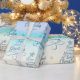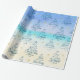 This wrapping paper features a pattern of beachy holiday sayings with script calligraphy in the shape of Christmas trees: “Sand is the New Snow,” “Seas & Greetings,” and “Have a Very Beachy Christmas,” interspersed with tiny starfish, on an abstract beach background. Please contact me through Zazzle Chat if you need other colorways or design tweaks, or more matching products.