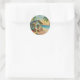 A pretty impasto beach themed sticker with a cute beach house, palm trees and tropical flowers.