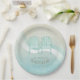 This paper plate in the soft colors of sea and sand allows you to easily add your own name and text using the provided template. The image of two Adirondack chairs on a distressed, watercolor background is highlighted by a wave accent in aqua and white. Search ID623 to see coordinating seaside elements and additional products with this design.