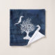 Beach House Bath Navy White Seahorse Turtle Coral. Hand painted watercolor wash wood look in indigo navy blue sets off the images of a white wood coral, sea turtle and pair of seahorses. Artwork was created by internationally known and licensed artist, Audrey Jeanne Roberts, copyright.