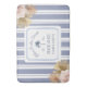 Introducing our Beach House Blue Stripes Coastal Boho Farmhouse Bath mat. Featuring watercolor illustration of orchid and dried palm leaves with navy blue strips as background. Suitable for Rental vacation beach house or coastal cottage.