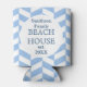 Beach House Blue White Herringbone | Custom Name Can Cooler