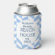 This pretty, personalised beach house (or beach party) can cooler has a lightly textured blue-and-white herringbone pattern. Easily add your personal details to the white circle in the middle.