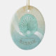 This ceramic ornament design in the soft colours of sea and sand allows you to easily add your own name and text using the provided template. The simple clam shell image on a distressed, watercolor background is highlighted by a wave accent in aqua and white. Search ID623 to see coordinating seaside elements and additional products with this design.