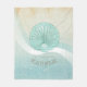 This fleece blanket design in the soft colours of sea and sand allows you to easily add your own name and text using the provided template. The simple clam shell image on a distressed, watercolor background is highlighted by a wave accent in aqua and white. Search ID623 to see coordinating seaside elements and additional products with this design.