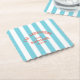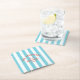 Beach House Custom Name Blue Cabana Stripe Paper Coaster