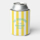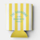 Beach House Custom Name Yellow Cabana Stripe Can Cooler