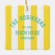 Beach House Custom Name Yellow Cabana Stripe Ceramic Ornament