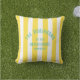 Beach House Custom Name Yellow Cabana Stripe Cushion