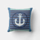 A sea themed design, with the image of an anchor on a striped blue background, for a stylish beach-house decoration. Front and back with some variations (colour of anchor and stripes)