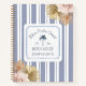 Introducing our Beach House Guest Book Blue Stripes Coastal Boho. Featuring watercolor illustration of orchid and dried palm leaves with navy blue strips as background. Suitable for Rental vacation beach house or coastal cottage.