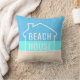 Modern Beach House Decorative Throw Pillow - All text can be changed or deleted. Abstract colour block sand, sea, and sky design with simple house outline. Elegant minimalist & pretty design is a perfect accessory for a vacation cottage near the ocean or lake, whether it be a regular family getaway or a vacation home rental. The trendy yet timeless design will compliment chic & modern home decor. Let the rest and relaxation begin. Beach please. Life is better at the beach.
