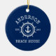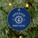 Nautical Anchor Rope Star Helm Family Name Beach House Navy Blue Ornament
