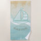 This beach towel design in the soft colours of sea and sand allows you to easily add your own name and text using the provided template. The simple sailboat image on a distressed, watercolor background is highlighted by a wave accent in aqua and white. If you aren't fortunate enough to have a beach house or cottage, just change the text on this fun design to whatever suits your needs. Search ID623 to see coordinating seaside elements and additional products with this design.